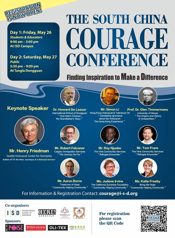 The Hong Kong Holocaust and Tolerance Centre was in China on May 26 and 27, 2017. Holocaust survivor Henry Friedman was joined by HKHTC Director of Education Simon K. Li (Visiting Educator, Anne Frank House) and our Board Director Glenn Timmermans (Professor, University of Macau) to present workshops relating to Holocaust and genocide education. The conference was attended by hundreds of educators from different communities in South China.